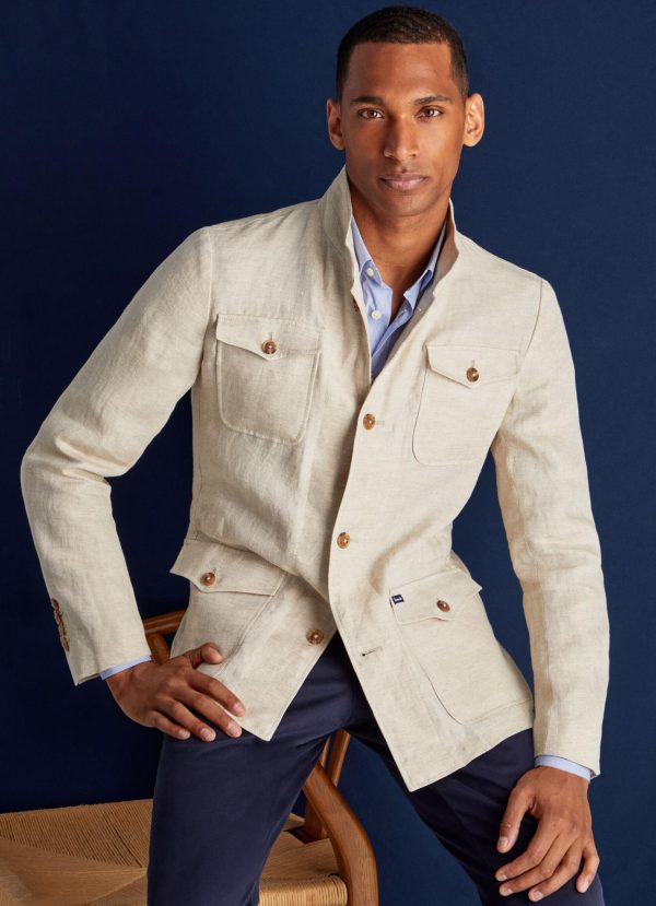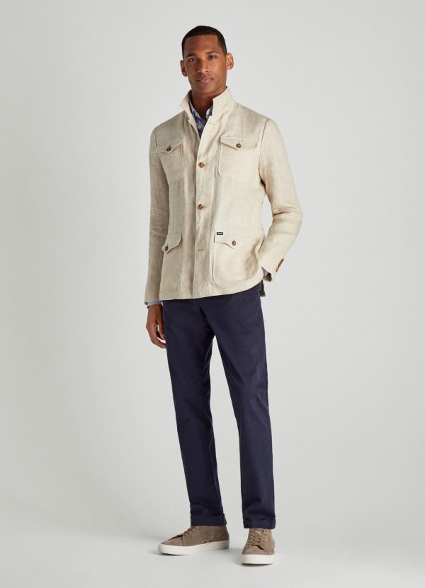 Cette saharienne à coupe droite en lin se démarque par ses quatre poches avant et son aspect délavé. Polyvalent, ce vêtement ajoutera une touche finale à votre tenue.
