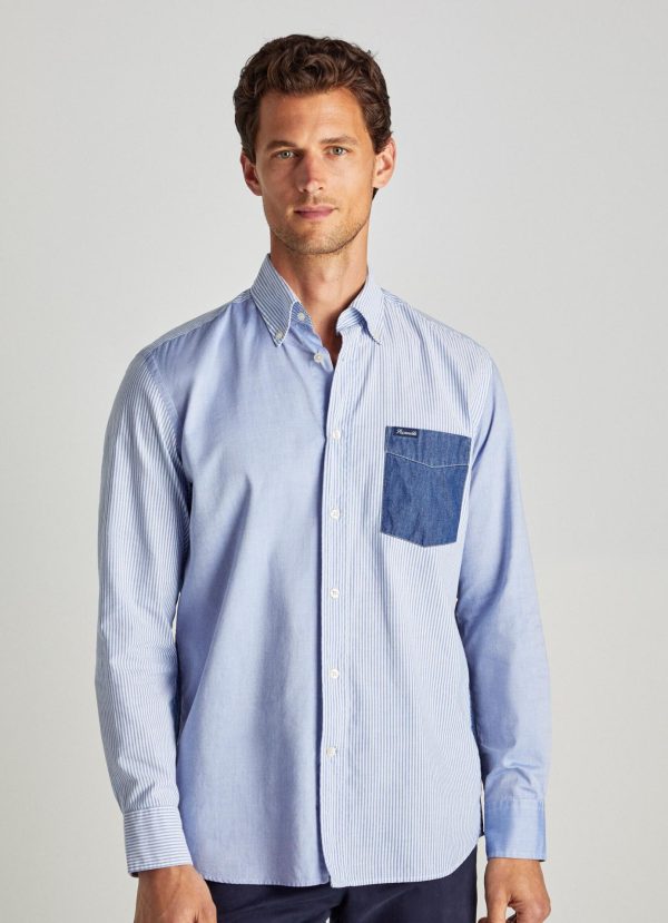 Cette chemise en tissu Oxford se distingue par ses détails en chambray qui lui confèrent un style décontracté. Son design patchwork, qui combine des rayures unies et évasées, complète sa structure unique. Avec sa coupe club, elle arbore un style moderne et décontracté, idéal pour une tenue tendance et décontractée.- Coupe club- Manches longues- Col boutonné- Poche poitrine- Étiquette logo FACONNABLE sur la poche See More Details