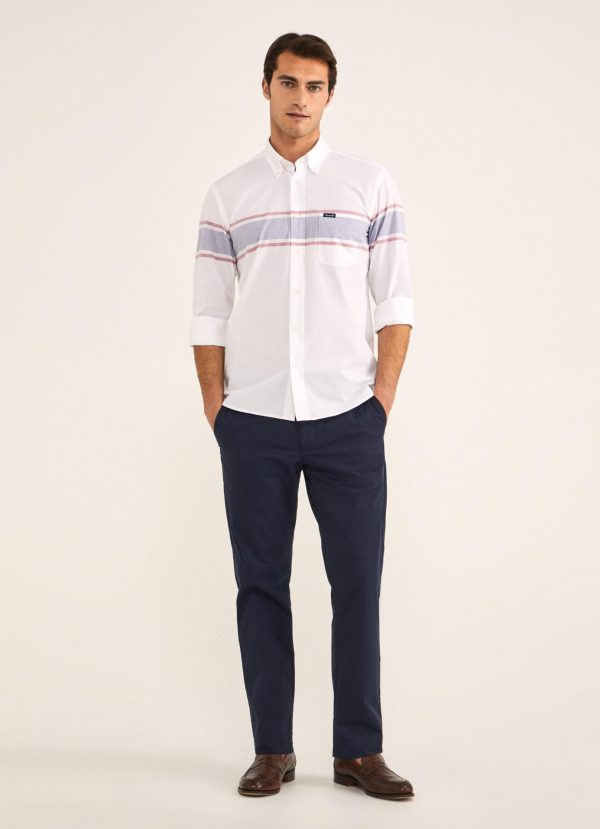 Avec un design classique, cette chemise est un vêtement polyvalent qui peut être facilement combiné avec nos chinos emblématiques. Elle présente des détails contrastés comme une rayure imprimée et une poche poitrine sur le devant.