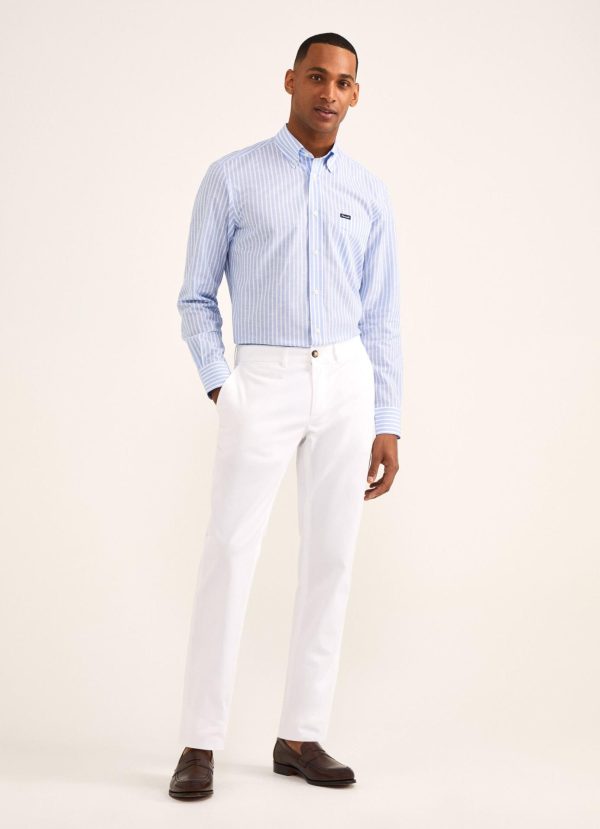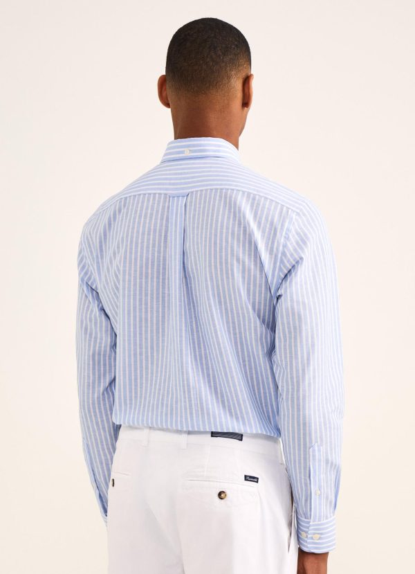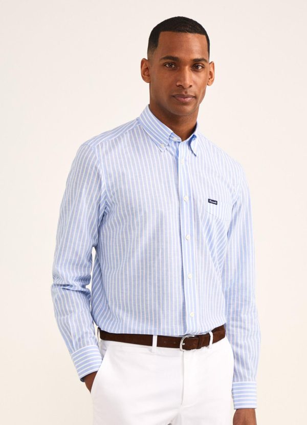 Cette chemise à rayures a été conçue dans un mélange de coton et de lin. Polyvalente, elle se porte aussi bien avec les jeans qu’avec les chinos de notre collection.