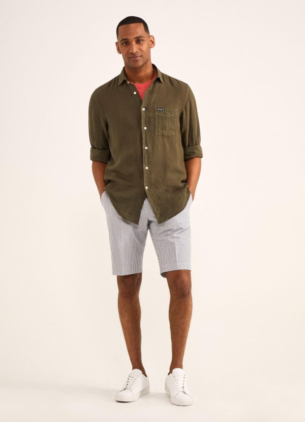 Respirable et confortable, cette chemise en lin est un vêtement idéal pour l’été. Elle s’associe parfaitement aux shorts et aux chinos de notre collection.