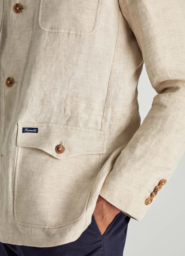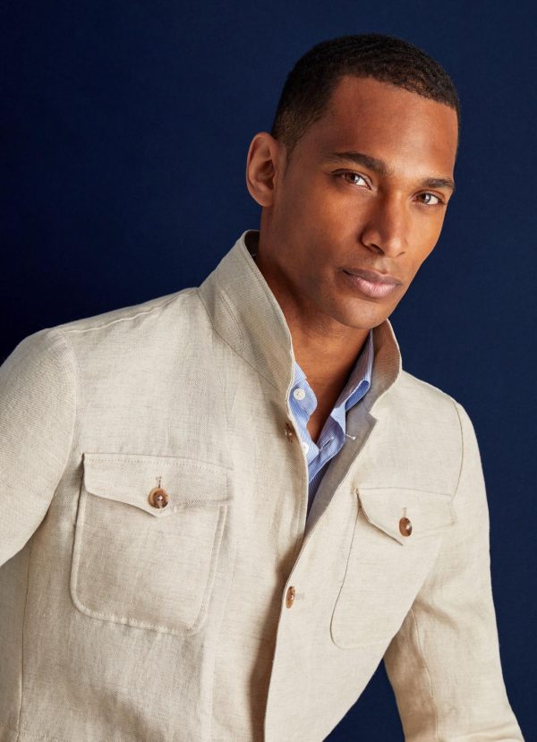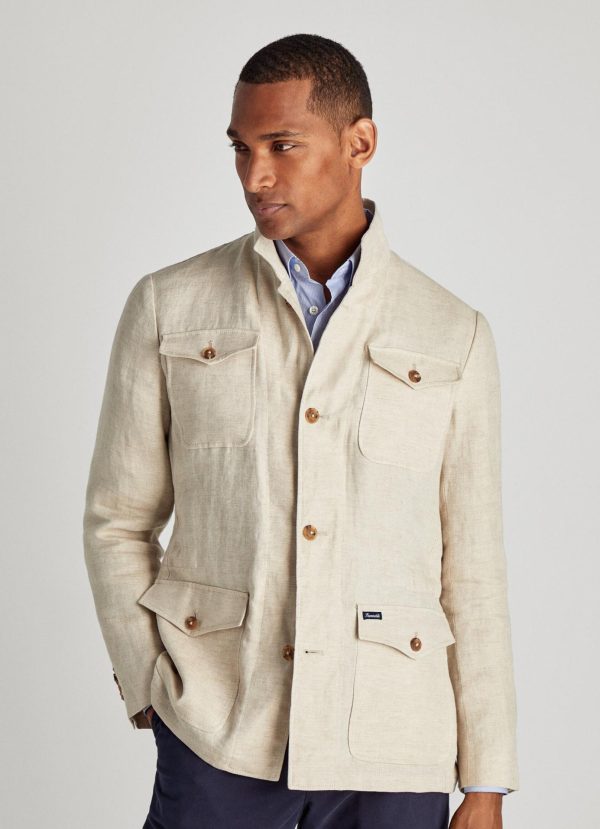 Cette saharienne à coupe droite en lin se démarque par ses quatre poches avant et son aspect délavé. Polyvalent, ce vêtement ajoutera une touche finale à votre tenue.