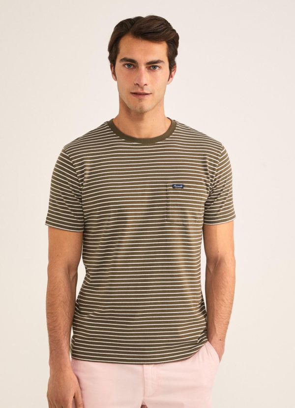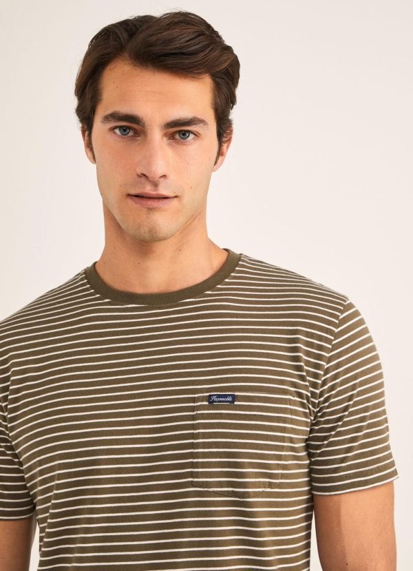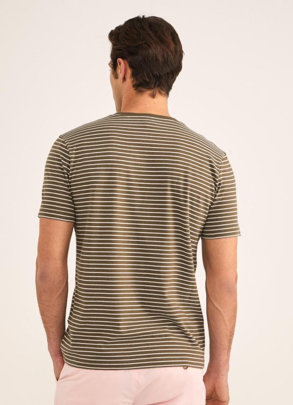 Homme T-Shirts | Façonnable T-SHIRT RAYÉ À COL RAS-DU-COU Khaki/ecru